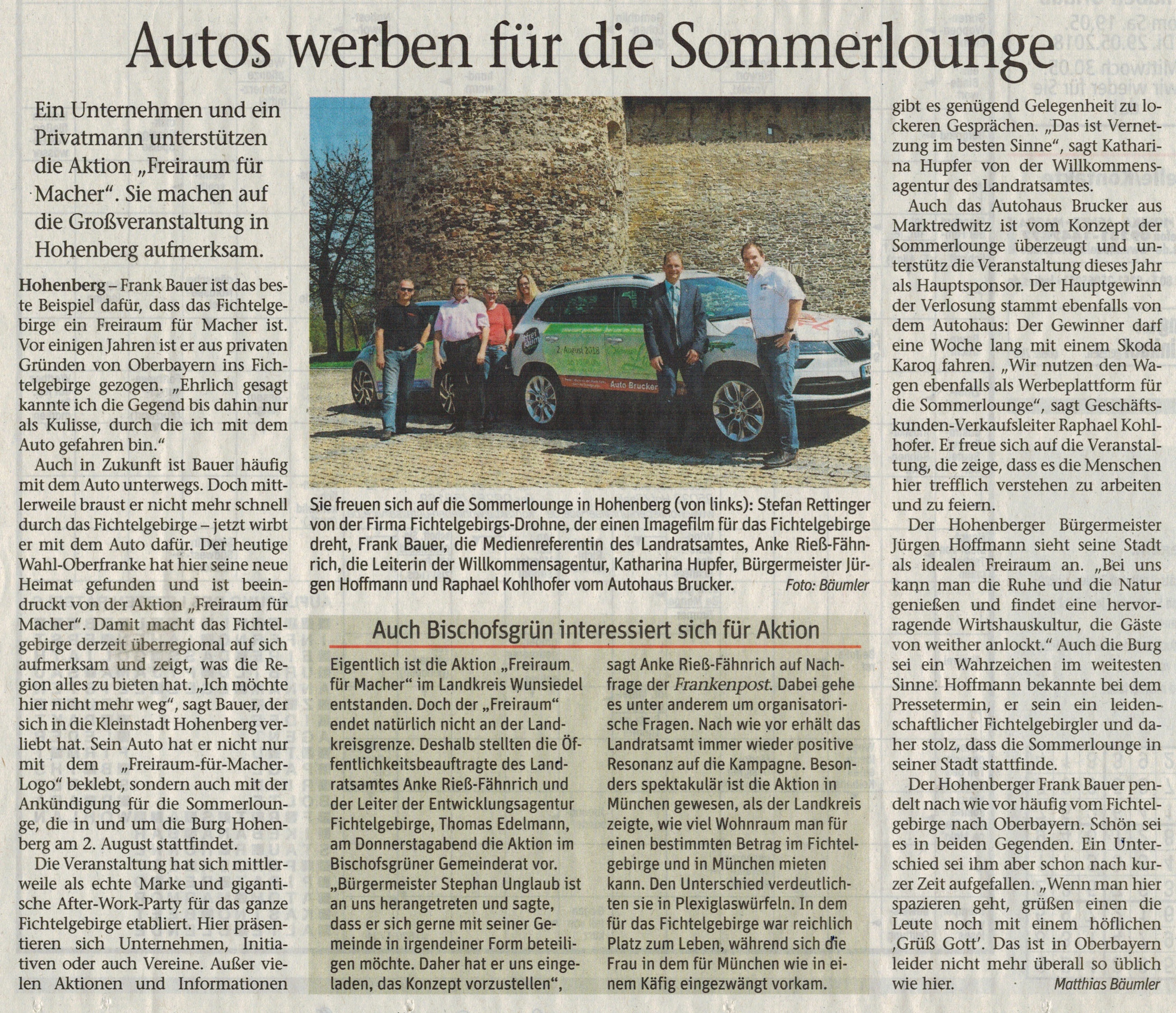 Autos werben für die Sommerlounge – Artikel aus der Frankenpost vom 18.05.2018